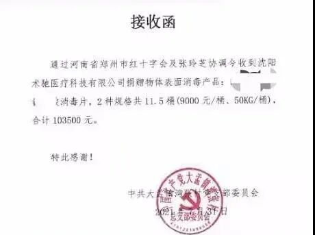 疫情条件下,水灾后因为卫生条件差,对于消毒物资的需求,一定是十分迫切的。农工党沈阳市医药支部党员、沈阳术驰医疗科技有限公司总经理刘博,第一时间联系郑州市红十字会了解需求物资的情况,立刻购买了价值十几万消毒物资捐献给灾区。