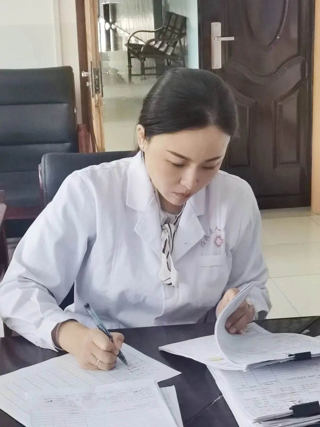 随后,她随锦州援疆医疗队到阿勒腾也木勒乡卫生院指导工作,并到当地老百姓家里上门就诊,为行动不方便的老乡带来便捷的医疗条件,深受群众称赞。